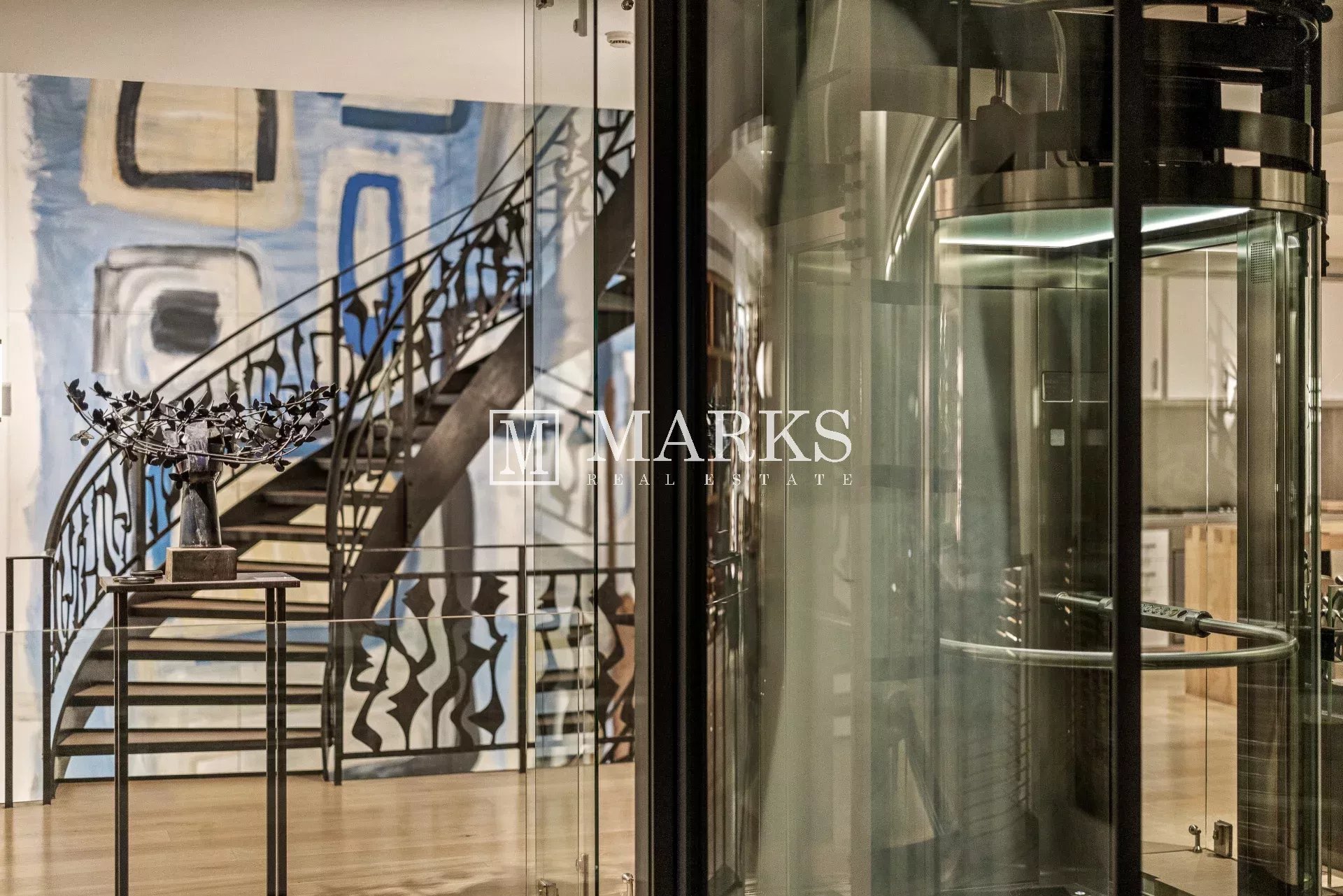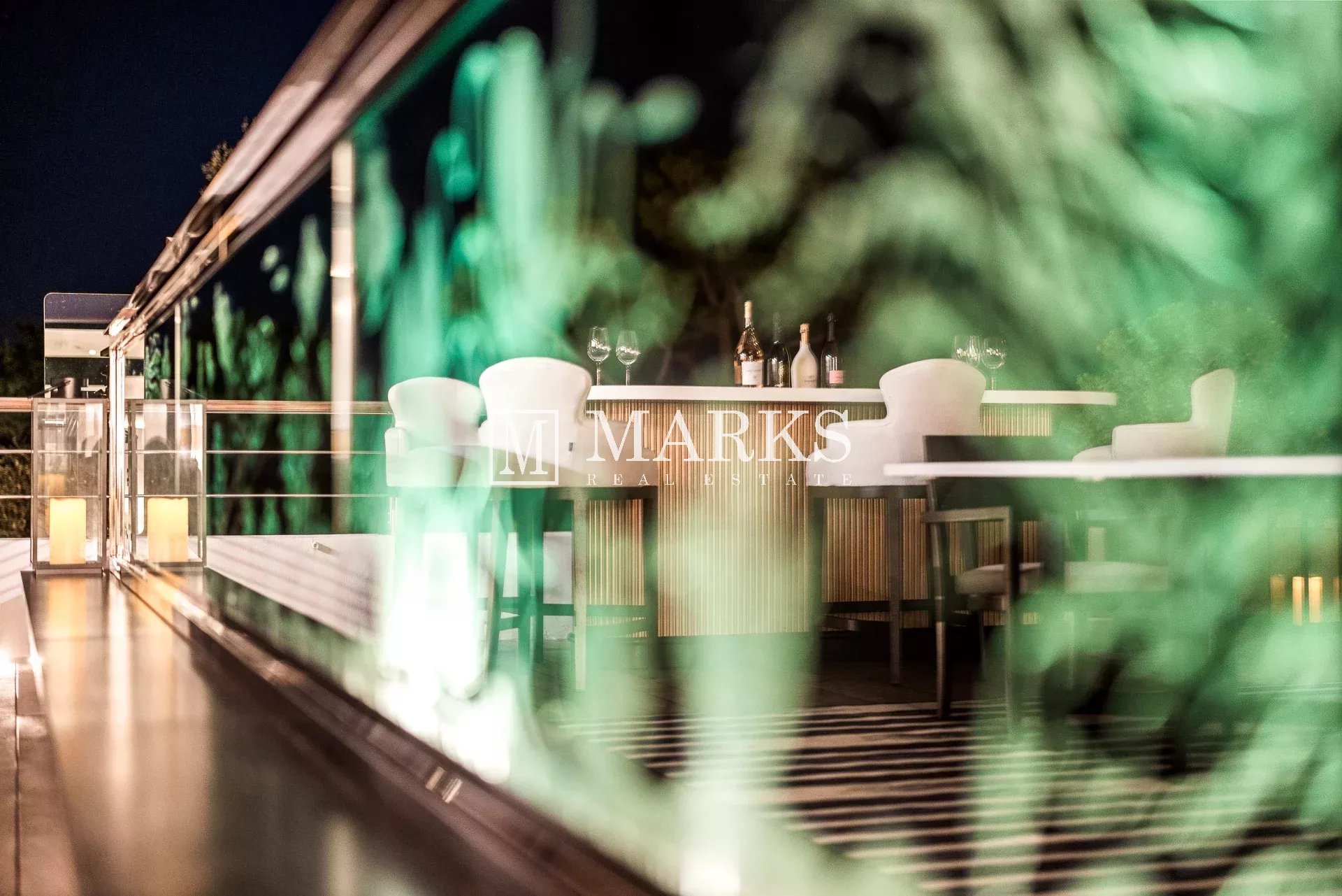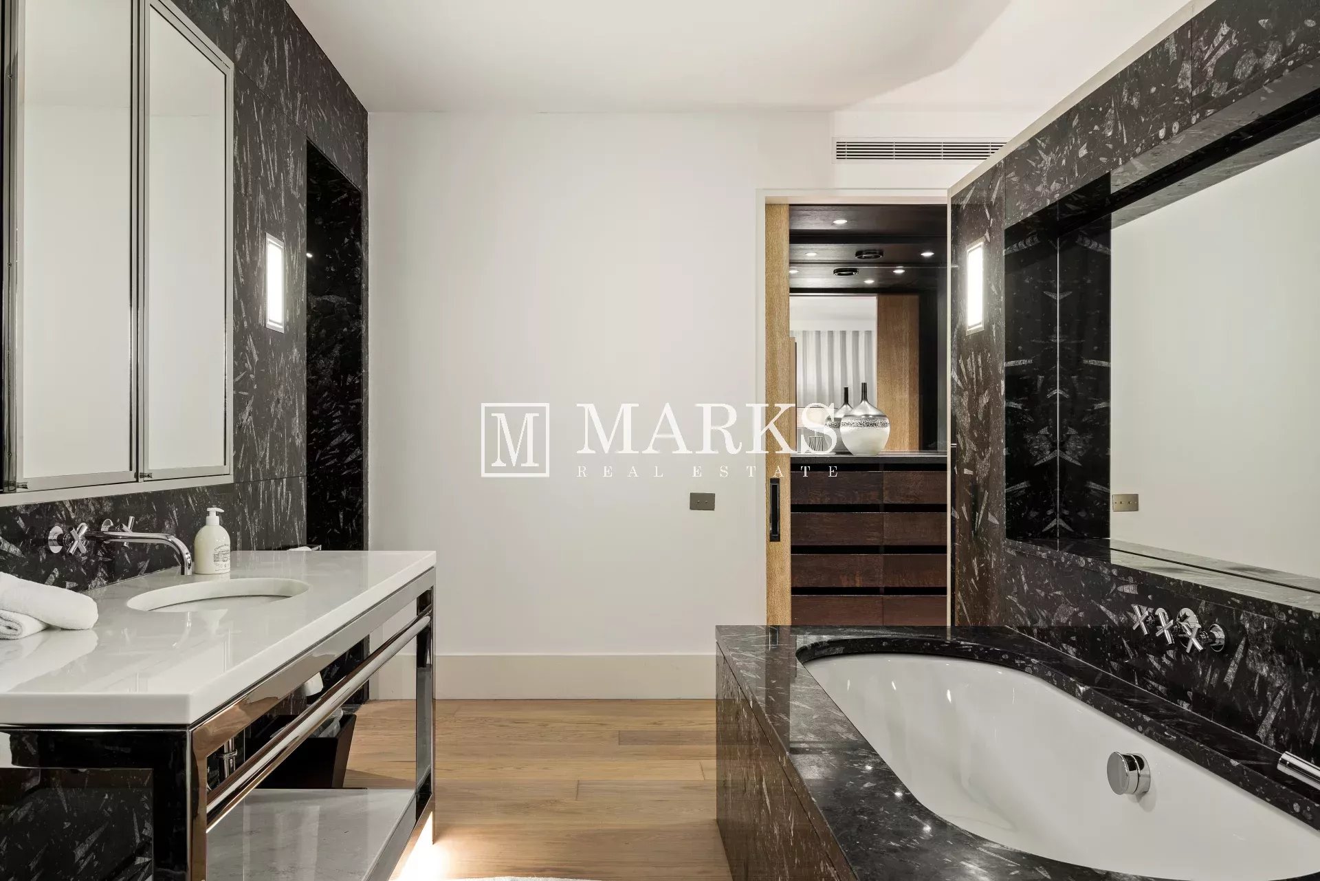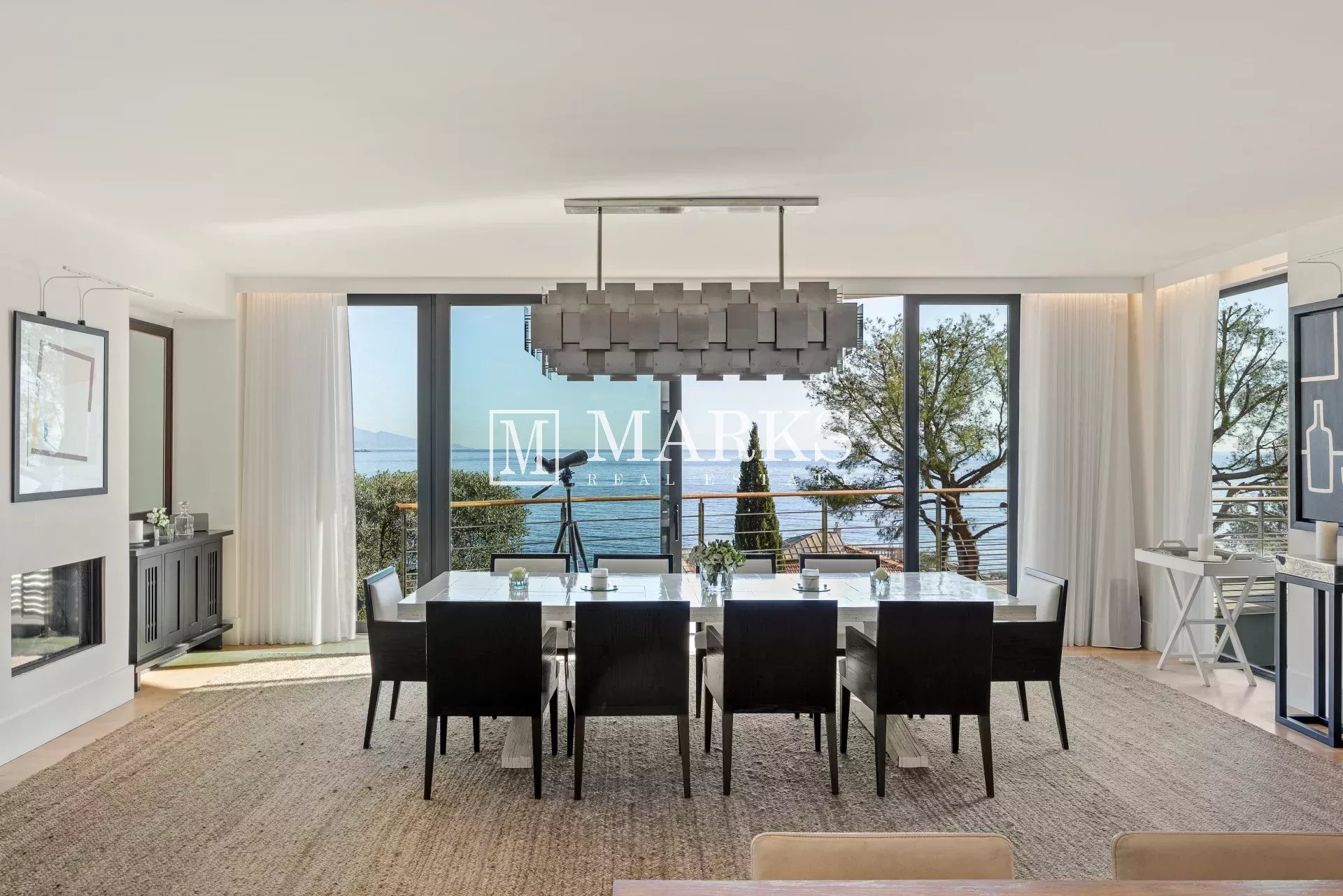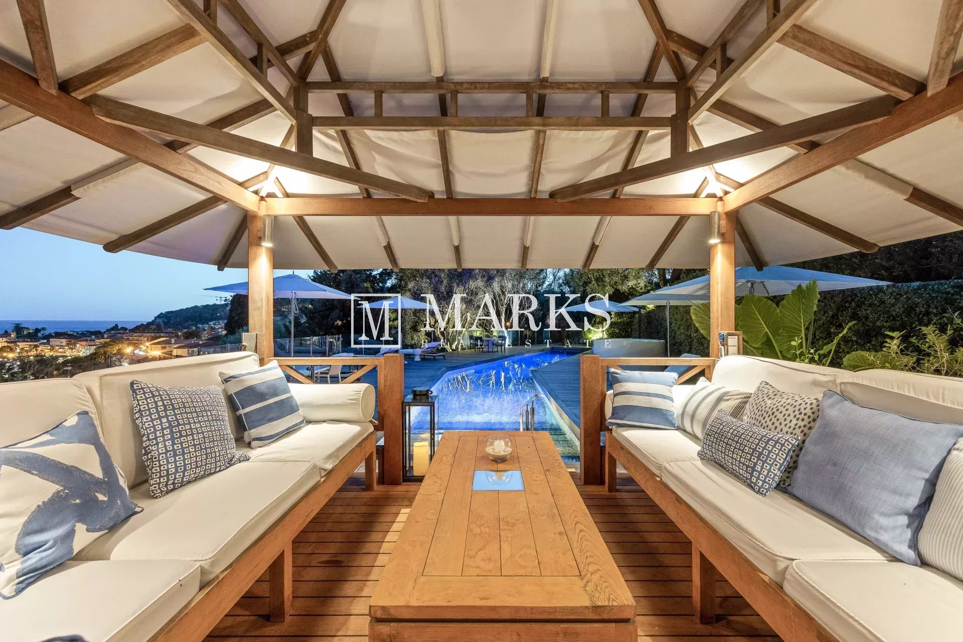 Récemment rénové, l’intérieur présente un design contemporain impeccable. Le salon à double hauteur, la cuisine ouverte et la salle à manger spacieuse sont d’une qualité exceptionnelle, avec un mobilier épuré et discret qui permet au paysage de rester le point de mire. Une salle de cinéma luxueuse, dotée d’une technologie de pointe, permet de se divertir en soirée.