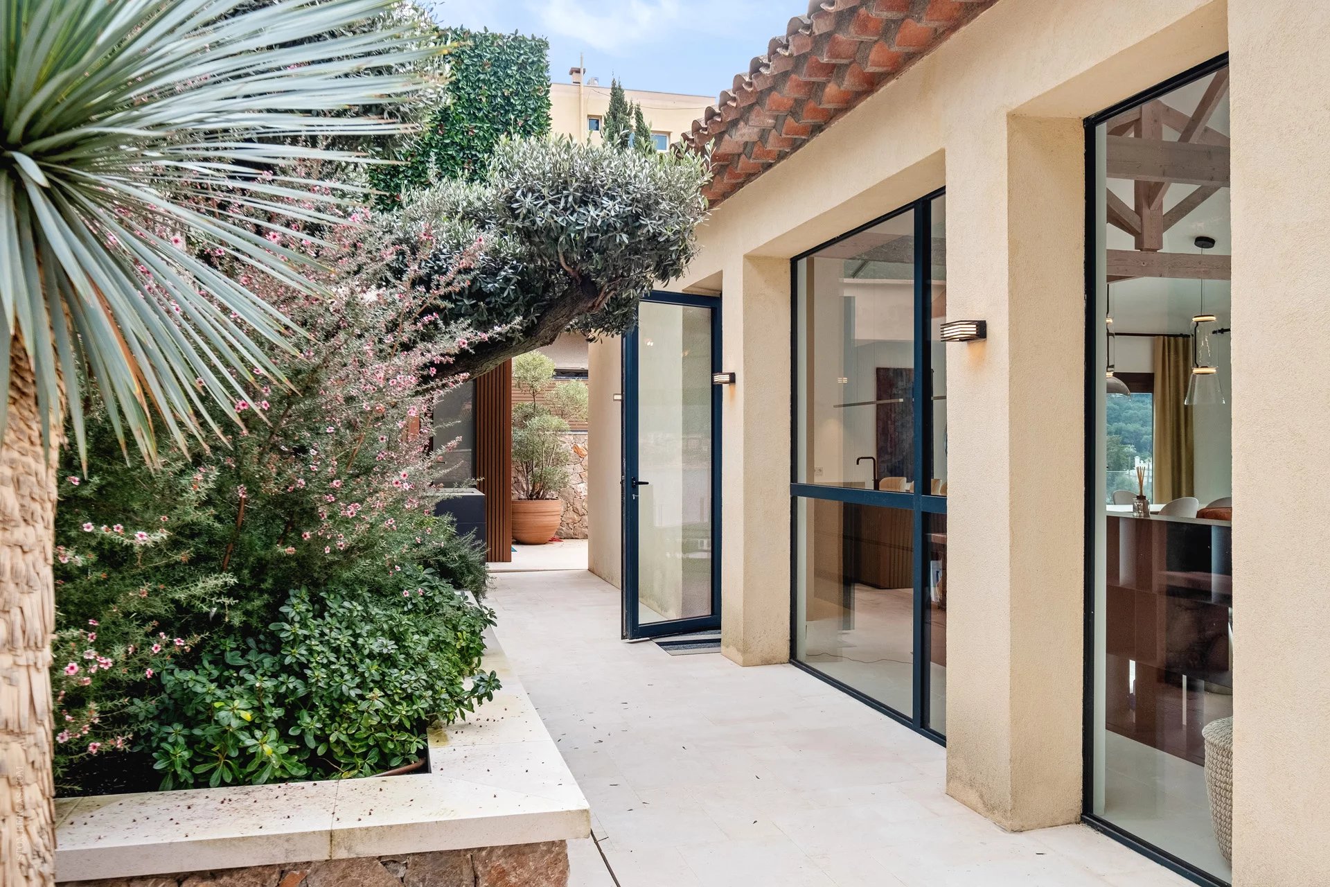 En parfaite harmonie avec son environnement méditerranéen, les terrasses paysagées et les jardins sont ornés de plantes luxuriantes et dotés de mobilier extérieur haut de gamme signé KETTAL et Paola Lenti.